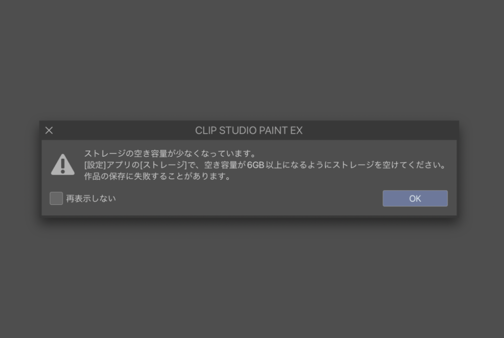 クリスタでストレージ6GB以上の空きを作れと言う警告の解消方法