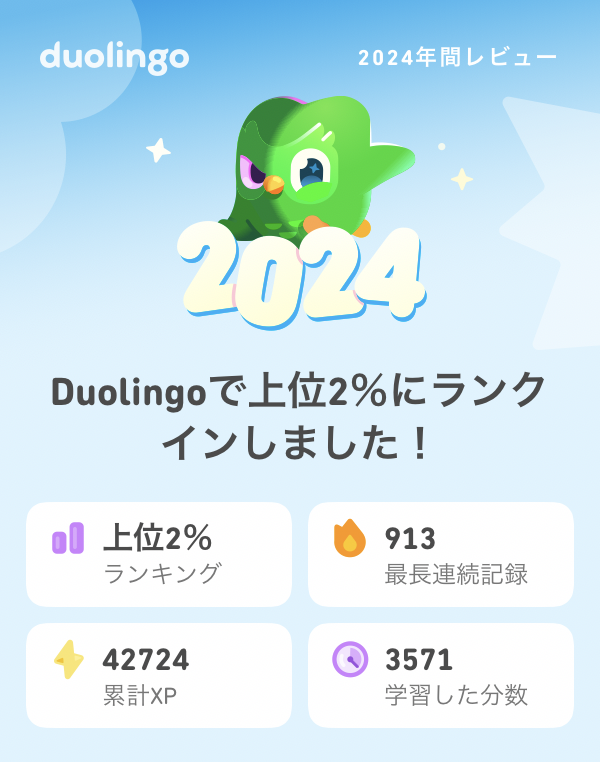 毎日コツコツ続けて900日突破!英語学習アプリ「Duolingo」2024年の振り返り